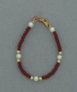 Kabbalah Bracelet made with Beautiful Red/Gold Beads & real fresh water pearls. Traditional scarlet thread is threaded thru the beads. The thread was wounded around Rachels tomb 7 times to protect from the influences of the evil eye as chronicled by our ancient sages. There is a size for every age, 4" - 9.5" bracelets for children through ladies. Add $5.00 for sizes over 8" |