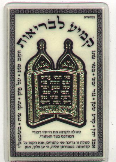 The Kabbalistic amulets are 24 Kt Gold plated and measures a little over 3 1/4 x 2 1/4 inches. Each amulet is made from metal and plated over the metal. The amulet is laminated so it will not get ruined by daily wear & tear and comes with its own plastic wallet. Made by Kabbalists in Israel where each amulet is prayed over and the appropriate Kabbalistic words are adhered. |
