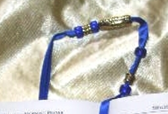 Beautiful handmade blue ribbon and gold tone