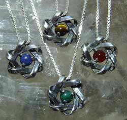 | Large double mobius sterling silver with 12mm stone. $36.00 No Chain | Small Double mobius SS with 5 mm. stone $20.00 No Chain |