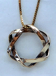 Double Mobius This unique Star is in the form a Double Mobius Strip. Each band has one continuous surface and one edge. This elegant and beautiful design symbolizes our eternal relationship with our loved ones and with G_d. MORE INFO