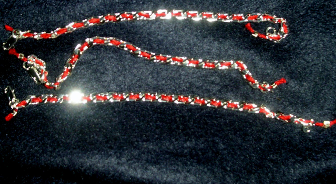 Protection: Healing: or Prosperity Red String woven in a silver Bendel. Choose size 7, 8 or 9, 10. Curb flat shown below. For Round click here. Size 9 or 10 can be used as an ankle bracelet.