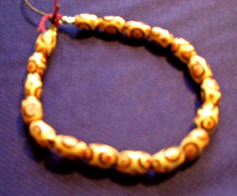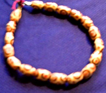 Kabbalah Bracelet made with wood, stone or sea shell. Traditional scarlet thread is threaded thru the beads. The thread was wounded around Rachels tomb 7 times to protect from the influences of the evil eye as chronicled by Jewish ancient sages. Each bracelet has silver findings & leather stringing. There is a size for every age, 4" - 12.5" bracelets for children through men. |