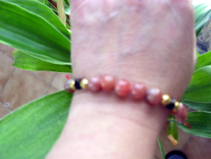 Kabbalah Bracelet made with Rhodochrosite Beads. These are Rhodochrosite beads in beautiful light raspberry color. Rare stones. The scarlet thread is threaded thru the beads. The thread was wounded around Rachels tomb 7 times to protect from the influences of the evil eye as chronicled by Jewish ancient sages. There is a size for every age, 5" - 8.0" bracelets for children through ladies. |
