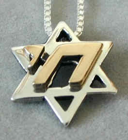 Sterling Silver Star of David with 9 Kt Gold Chai