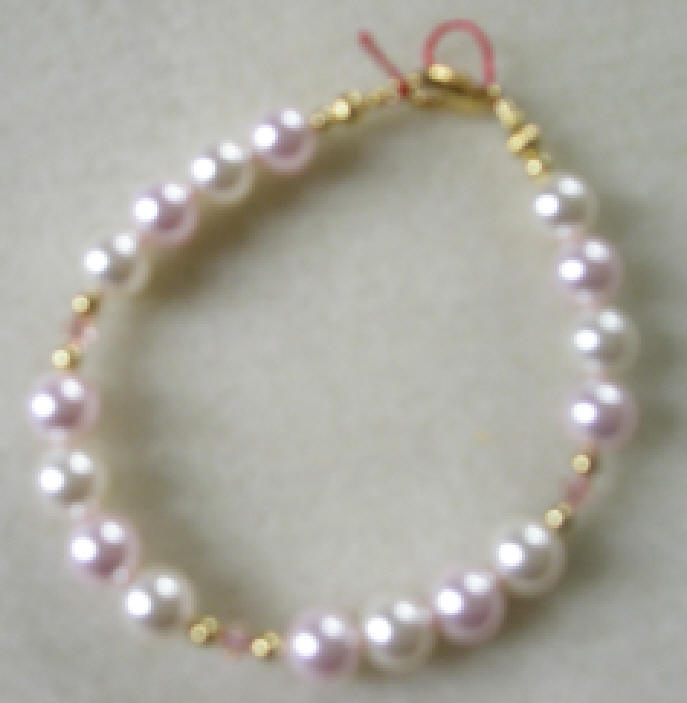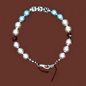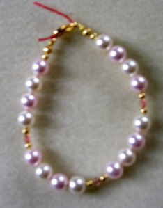 Kabbalah Bracelet made with Beautiful Swarovski pearls. Traditional scarlet thread is threaded thru the beads. The thread was wounded around Rachels tomb 7 times to protect from the influences of the evil eye as chronicled by Jewish ancient sages. Each bracelet has gold findings & swarovski color coordinated bicones unless silver is requested.. There is a size for every age, 4" - 9.5" bracelets for children through ladies. Add $5.00 for sizes over 9.0" |