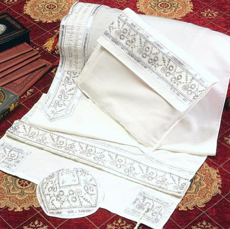 A Designed Embroidered Beaded Tallit BBWF-205-BF 3 Pc Tallit,
