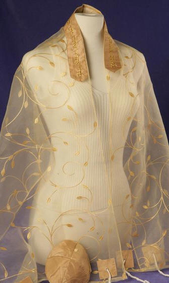 piece exquisite light weight chiffon tallit with Brocade. As sunny and