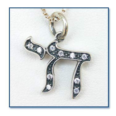 3/4-inch diameter Chai Pendant in Sterling Silver with zircon